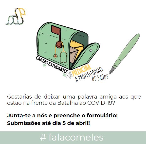 é com muita felicidade que vejo esta iniciativa da ANEM que nos está a permitir mostrar o nosso orgulho e respeito nestes tempos de crise É de coração cheio que vos vejo a atuar, a prescindir de horas de sono e da seguraça das vossas casas para estar no foco desta guerra contra um inimigo sem rosto. Como estudante de medicina do terceiro ano, já várias vezes questionei se é mesmo esse o futuro que quero para mim, mas vendo os sacríficios e o tabalho incansável por parte de todos os profissionais de saúde, restam-me poucas dúvidas e cada vez sinto mais orgulho na minha futura profissão.