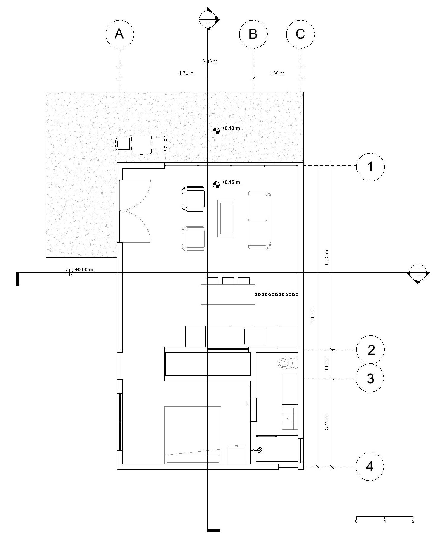 La propuesta generó espacios habitacionales míni mos, con multifuncionalidad en su mobiliario para au mentar el área libre para el trabajo artístico, separando a su vez las áreas de convivencia social en un lugar común recreacional con múltiples funciones para sa tisfacer las necesidades básicas humanas y artísticas sin importar la disciplina de cada residente temporal. El diseño se logró considerando diferentes casos de estudio de la zona y del mismo complejo, con la in tención de aprovechar los recursos naturales existen tes y abundantes sin que perturben el entorno natural y el patrón arquitectónico existente.