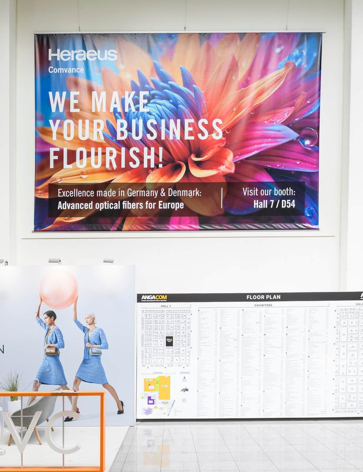 in der Kongressprogrammbroschüre in der offiziellen ANGA COM-App auf einer Sponsorentafel vor Ort