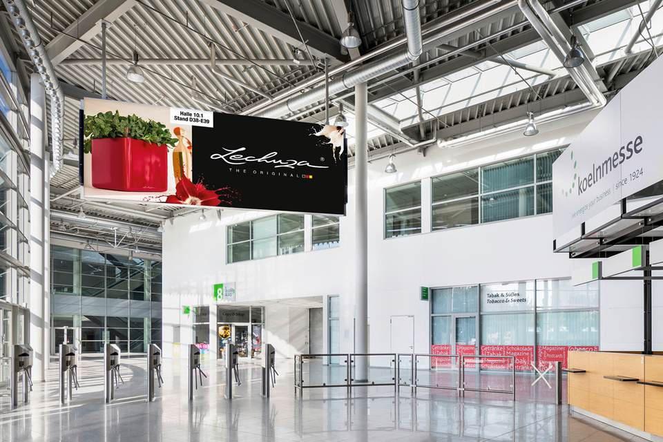 Digitale Werbung (LED-Screen) im Messeboulevard, oberhalb Eingang zur Halle 8: