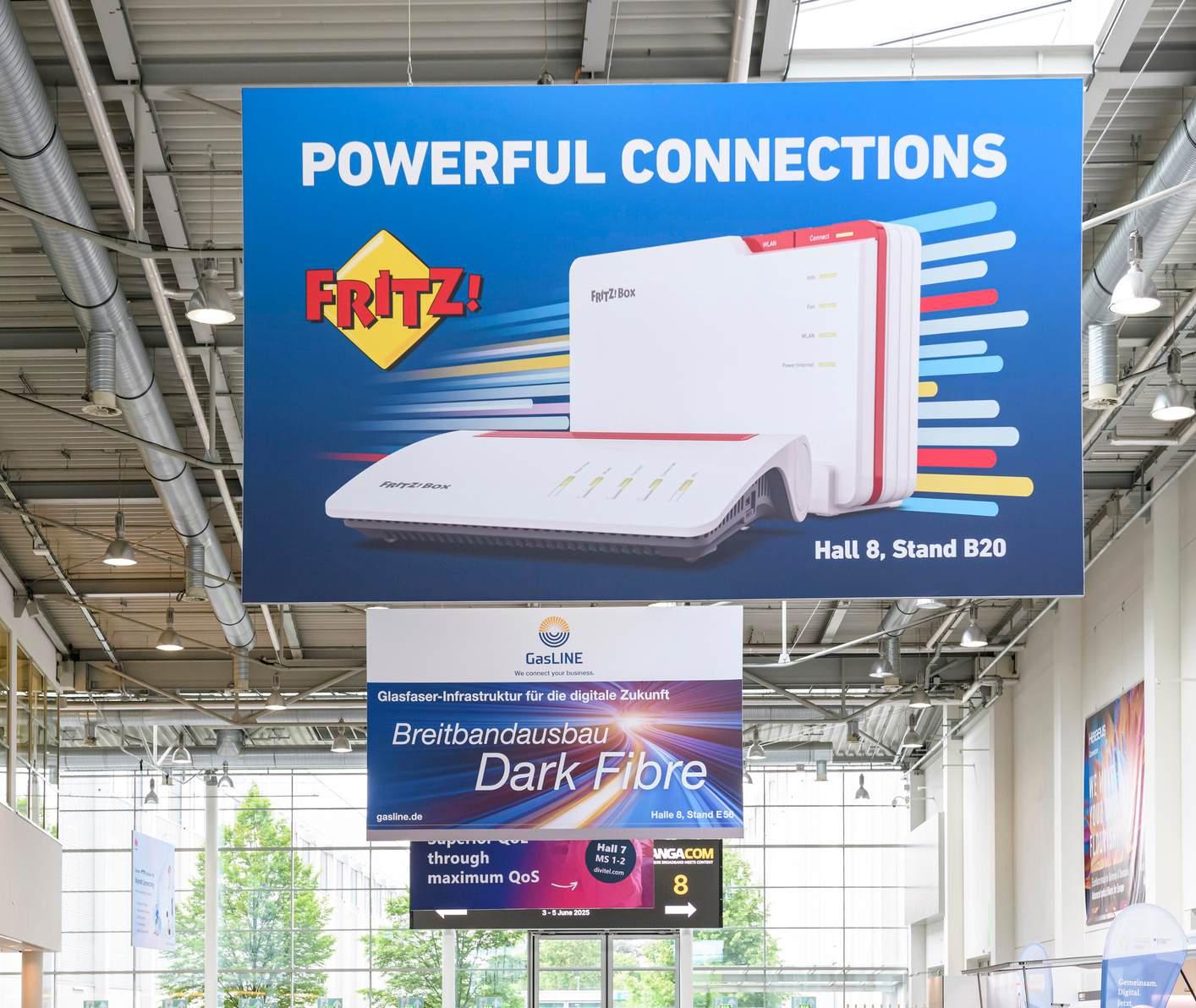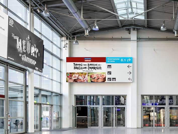 Digitale Werbung (LED-Screen) im Messeboulevard, oberhalb Eingang zur Halle 8: