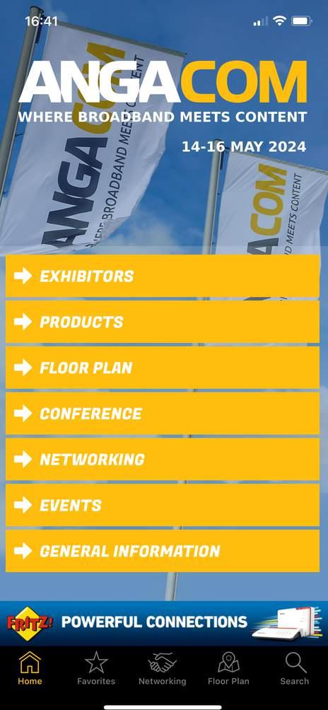 in der Kongressprogrammbroschüre in der offiziellen ANGA COM-App auf einer Sponsorentafel vor Ort
