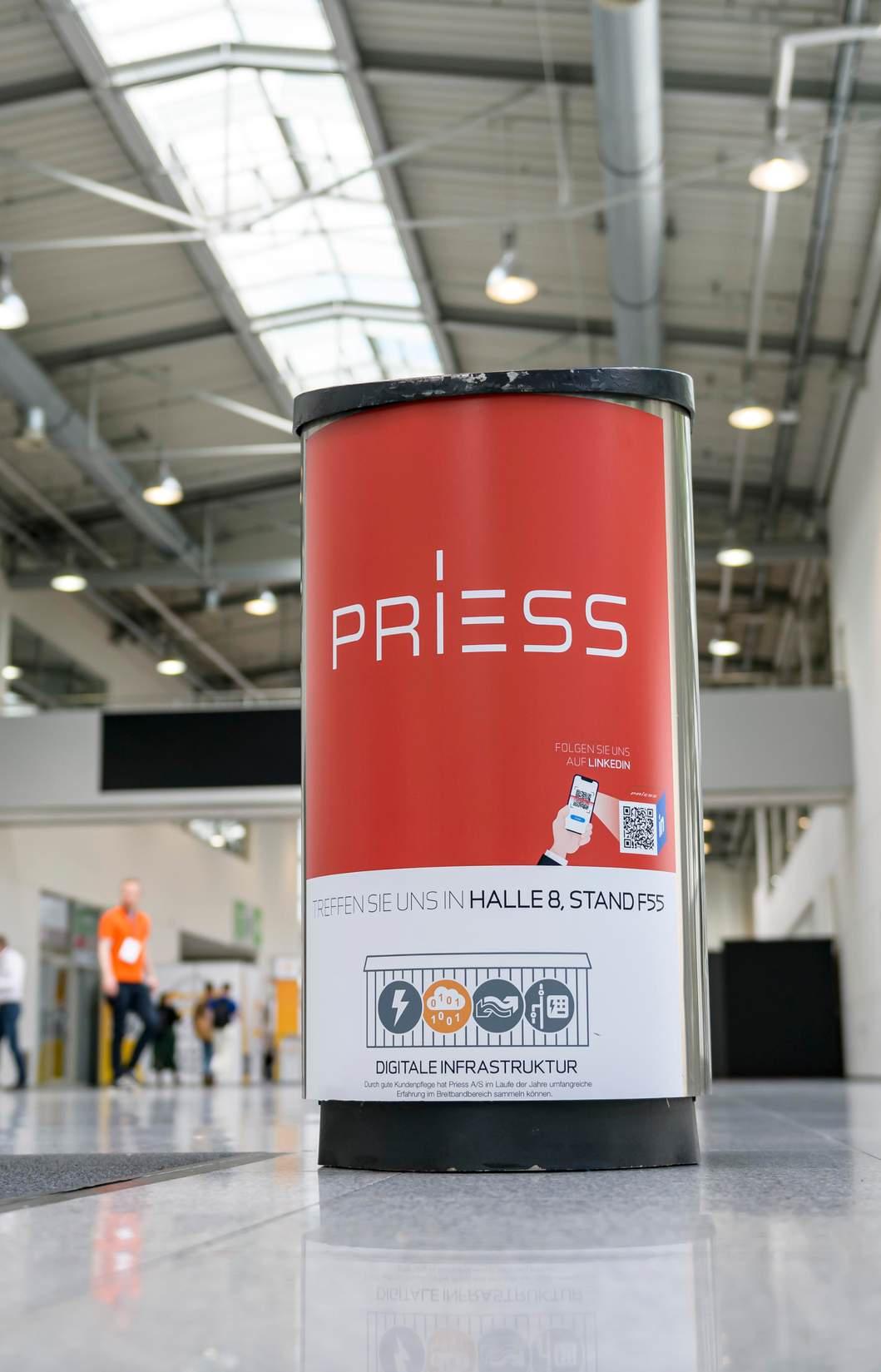 Werbeaufkleber auf allen Abfallbehältern in den Messehallen und/oder auf dem Messeboulevard: