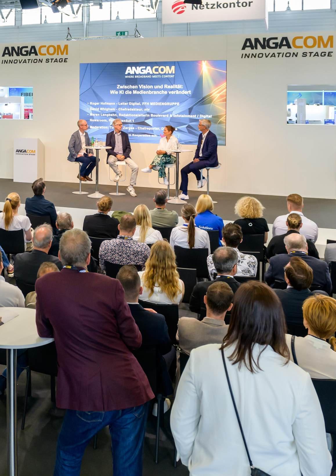 Die Innovation Stage bietet seit mehreren Jahren spannende Vorträge und Diskussionen zum Themenkreis Media Distribution, Video-Services und Connectivity. Das Branding umfasst: