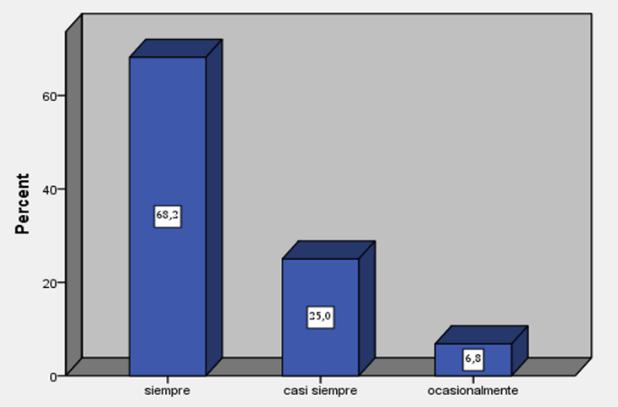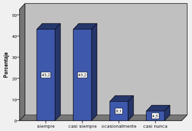 Siempre 19 43,2 Casisiempre 19 43,2 Ocasionalmente 4 9,1 Casinunca 2 4,5