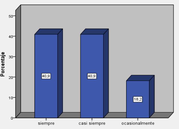 Siempre 18 40,9 Casisiempre 18 40,9 Ocasionalmente 8 18,2