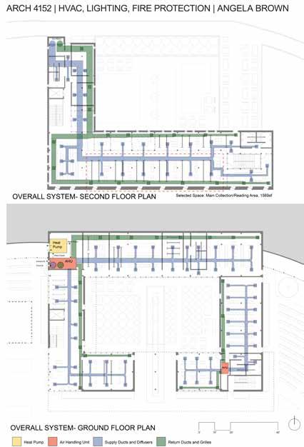 Located at an intersection, the library design connects to the nearby bike trail and shares parking with the nearby Jones Center: a recreation, community, and event center. The first floor of the library is more focused on communitybased public spaces, while the second floor includes the main library space and the more private spaces related to it.