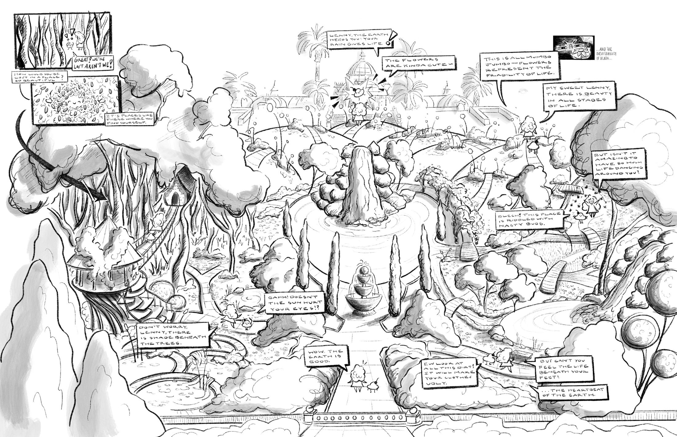 In Chip Sullivan’s studio, we were challenged to build landscapes centered around story and curiosity. By designing character studies, we engaged in idea-building and empathy. The story of my landscape aims to bring to life the restorative, healing qualities of nature.