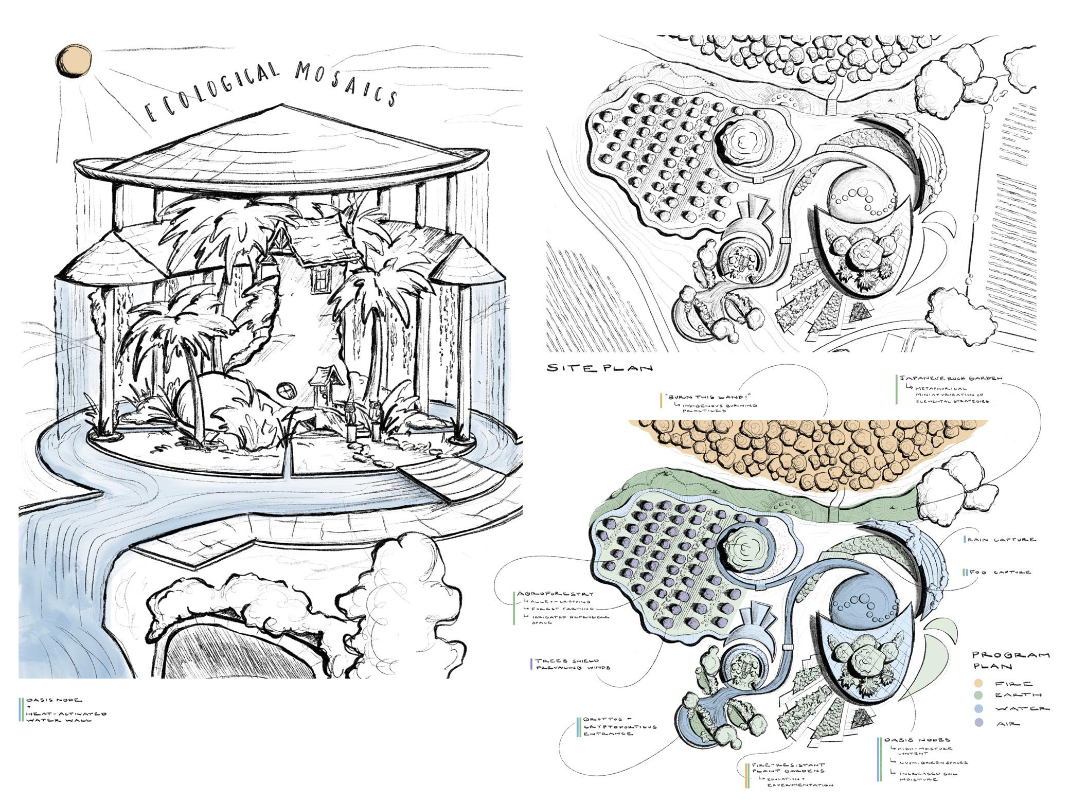 Located at a site of enduring industrial pollution, this project aims to heal the earth and connections to it through phytoremediative design and the creation of three distinct regions of water implementation: 1) water as environmental healer through wetland restoration; 2) the emotional experiences of water as playful, mysterious, and evocative; and 3) water’s healing qualities for humans, through the design of a hydroponic garden landscape.