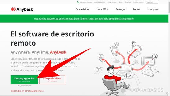1) LO PRIMERO QUE TIENES QUE HACER ES ENTRAR A LA WEB ANYDESK.COM. EN ELLA, PULSA EN EL BOTÓN DE DESCARGA GRATUITA PARA DESCARGAR LA APLICACIÓN QUE DEBES INSTALAR EN EL ORDENADOR QUE QUIERAS PODER CONTROLAR A DISTANCIA.