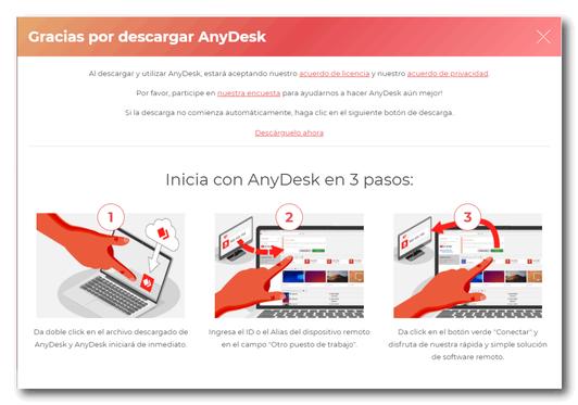 PONE “INSTALAR ANYDESK EN ESTE ORDENA DOR”. EN EL MOMENTO QUE PULSAMOS ESE BOTÓN NOS APARECE LA SIGUIENTE PANTALLA: