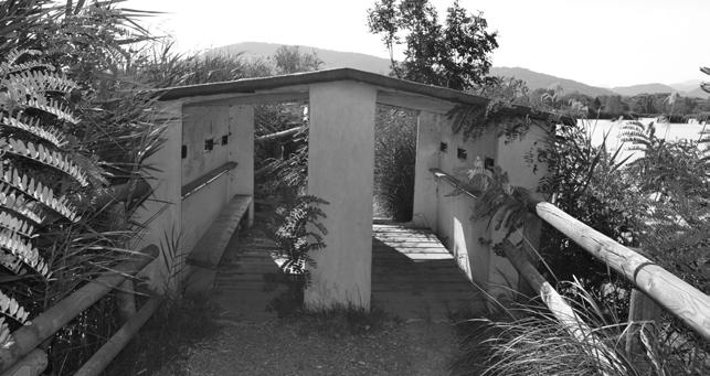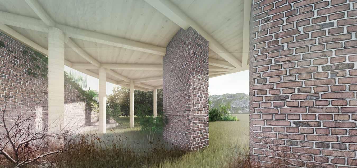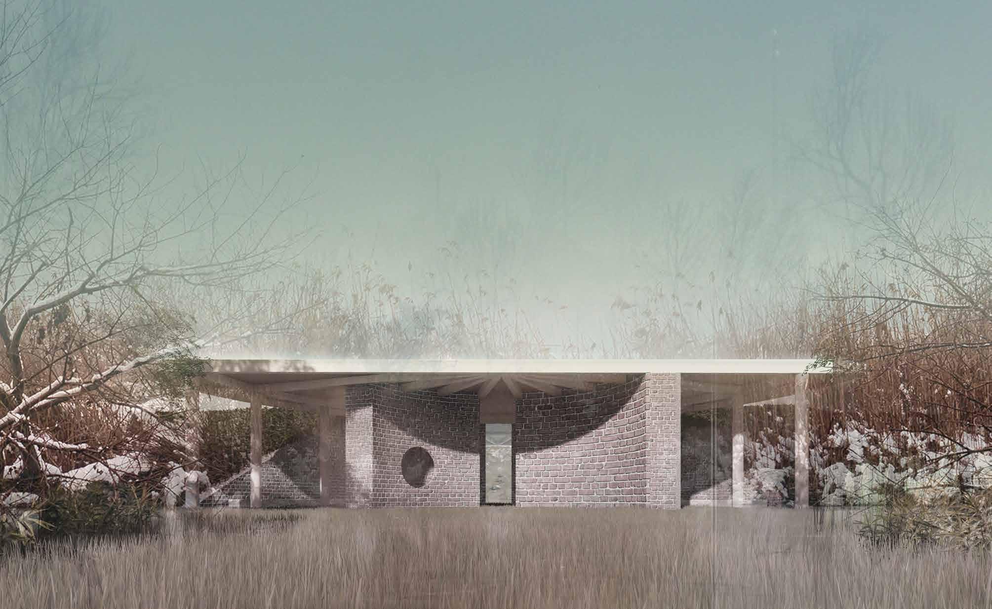 The Half Moons is the entrance of “Torbiere del Sebino” Nature Reserve. By excavating the 4-meter-high barrier, a 1.2-meter wide door is created within the intersetion of two semicircles. The process of entering is emphasized and enlarged by the form of circle, as the spatial experience starts with wide, inviting front door, then shrinking to a door, finally open up to the sublime view nature.