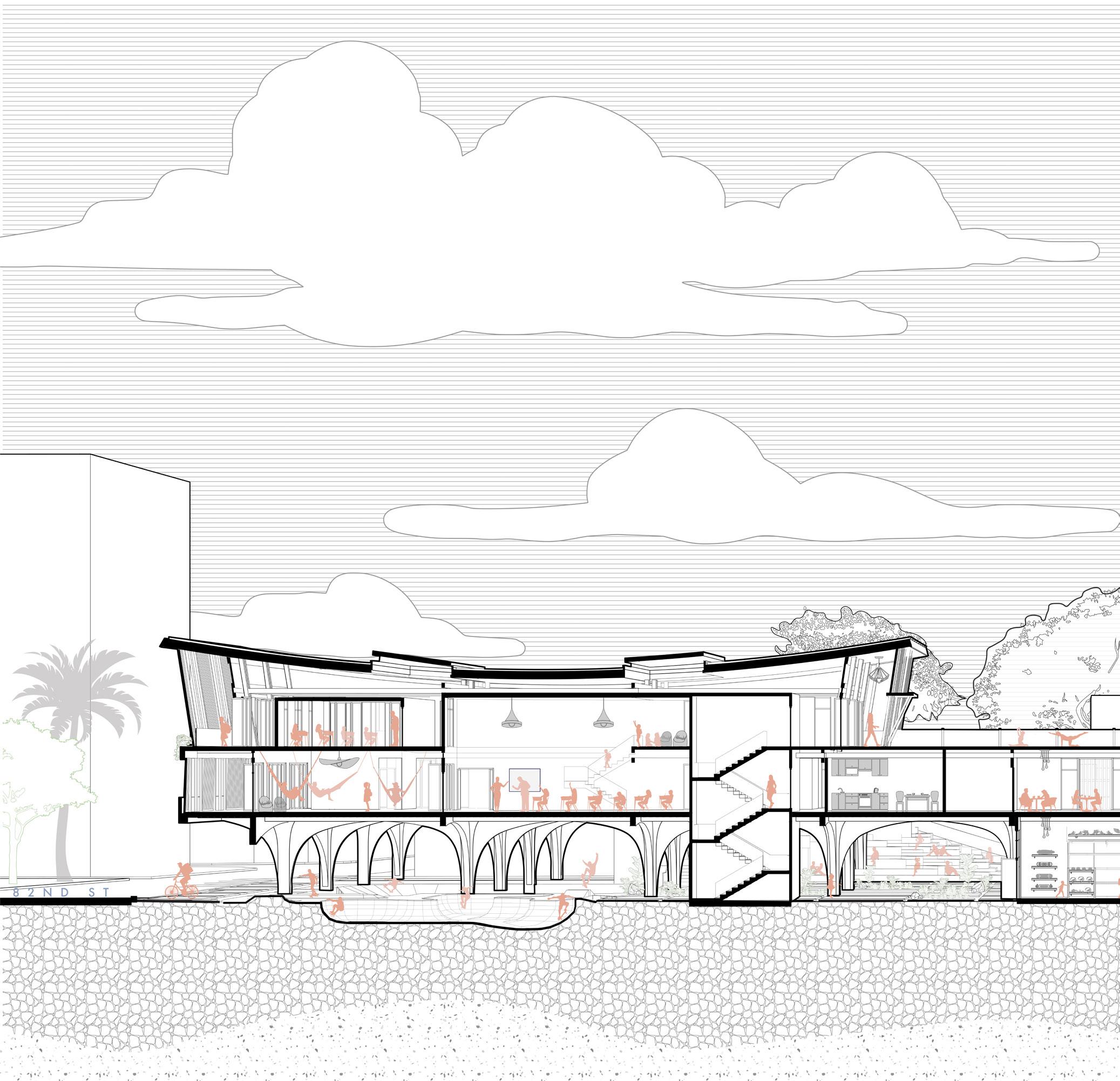 The Community Youth Center in North Miami Beach is a vibrant space for social interaction, learning, and physical activity. Its innovative design ensures comfort and resilience, incorporating passive air circulation and flood prevention. Inspired by Florida’s architectural heritage, the use of concrete and yellow pine glulam wood blends tradition with Art Deco style. Beyond its elegance, the center is a testament to thoughtful design taking into consideration time and place, seamlessly engaging with its community.