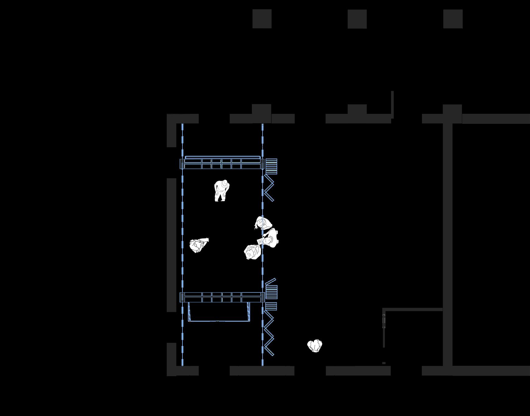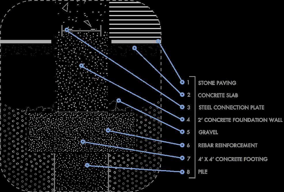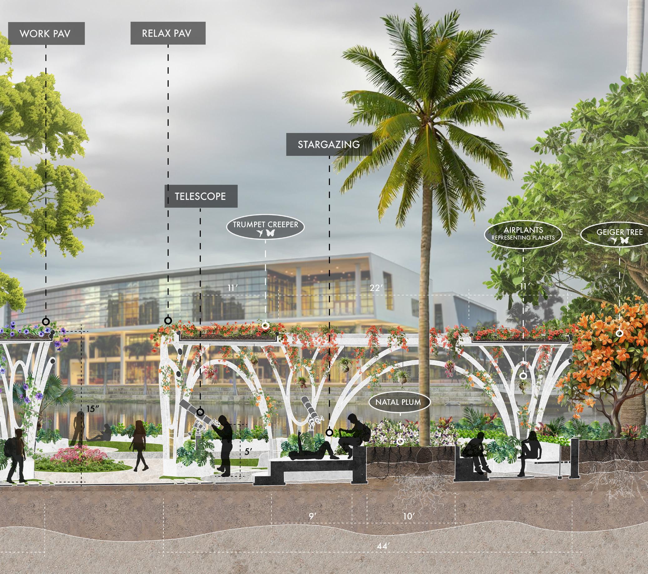 3.) BACK STAIRCASE MIXED WITH SEATING & PLANTING TO UNITE THE PUBLIC & ENCOURAGE NON SKATERS TO ENGAGE THE SITE