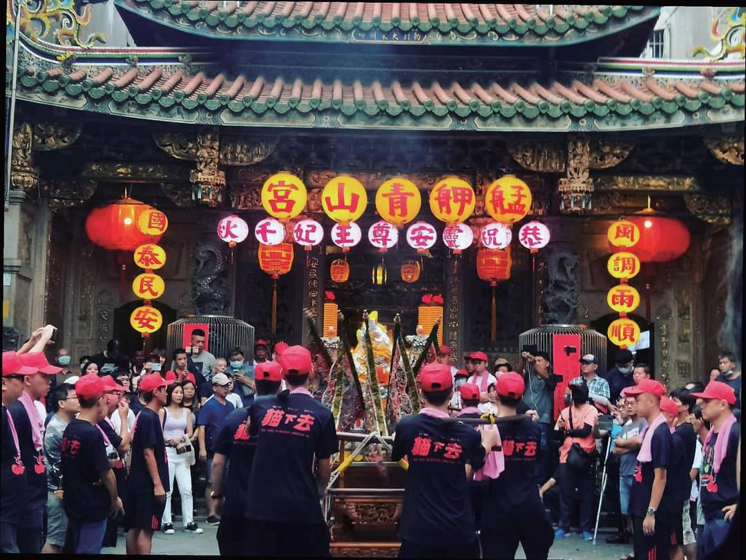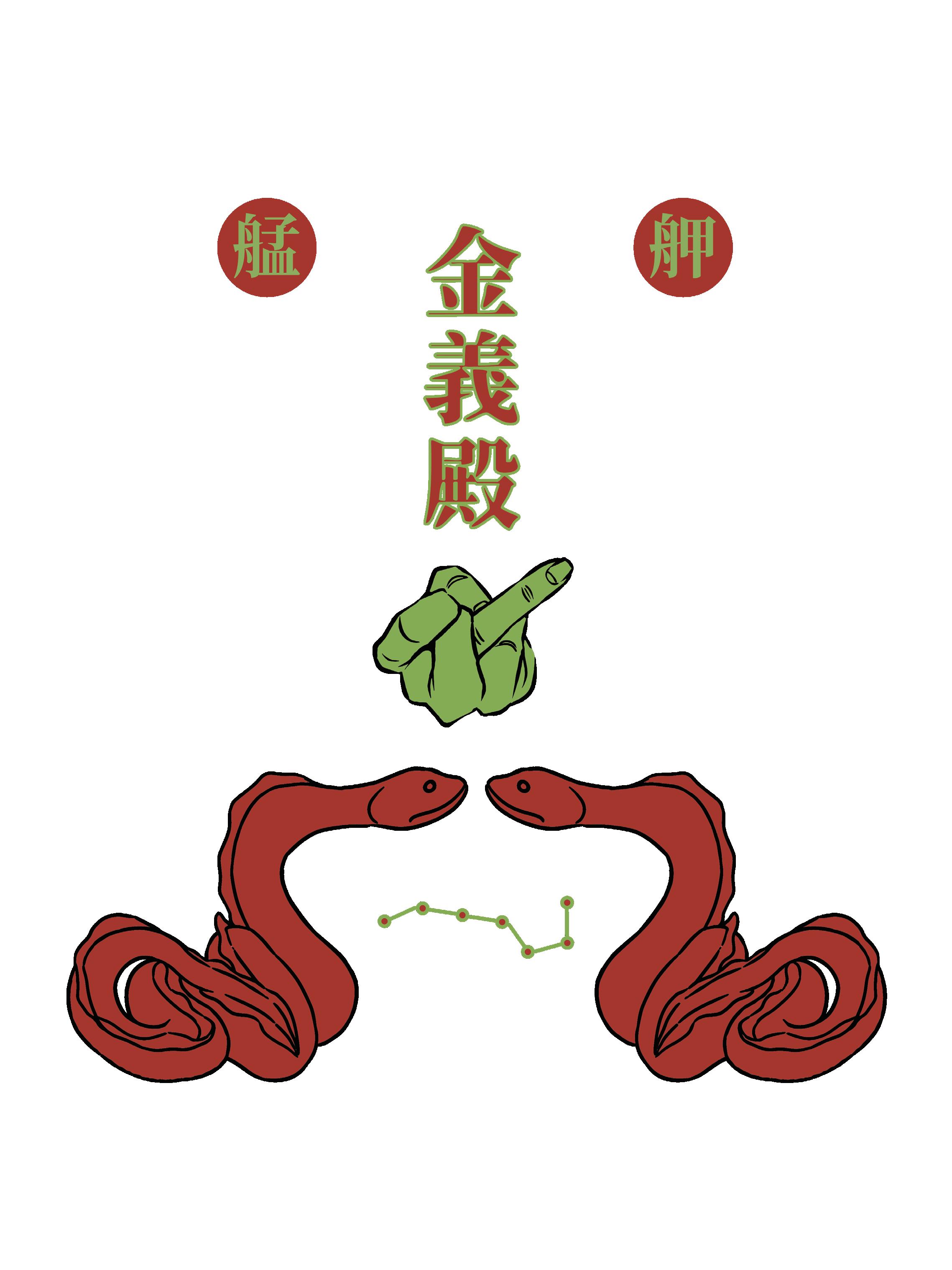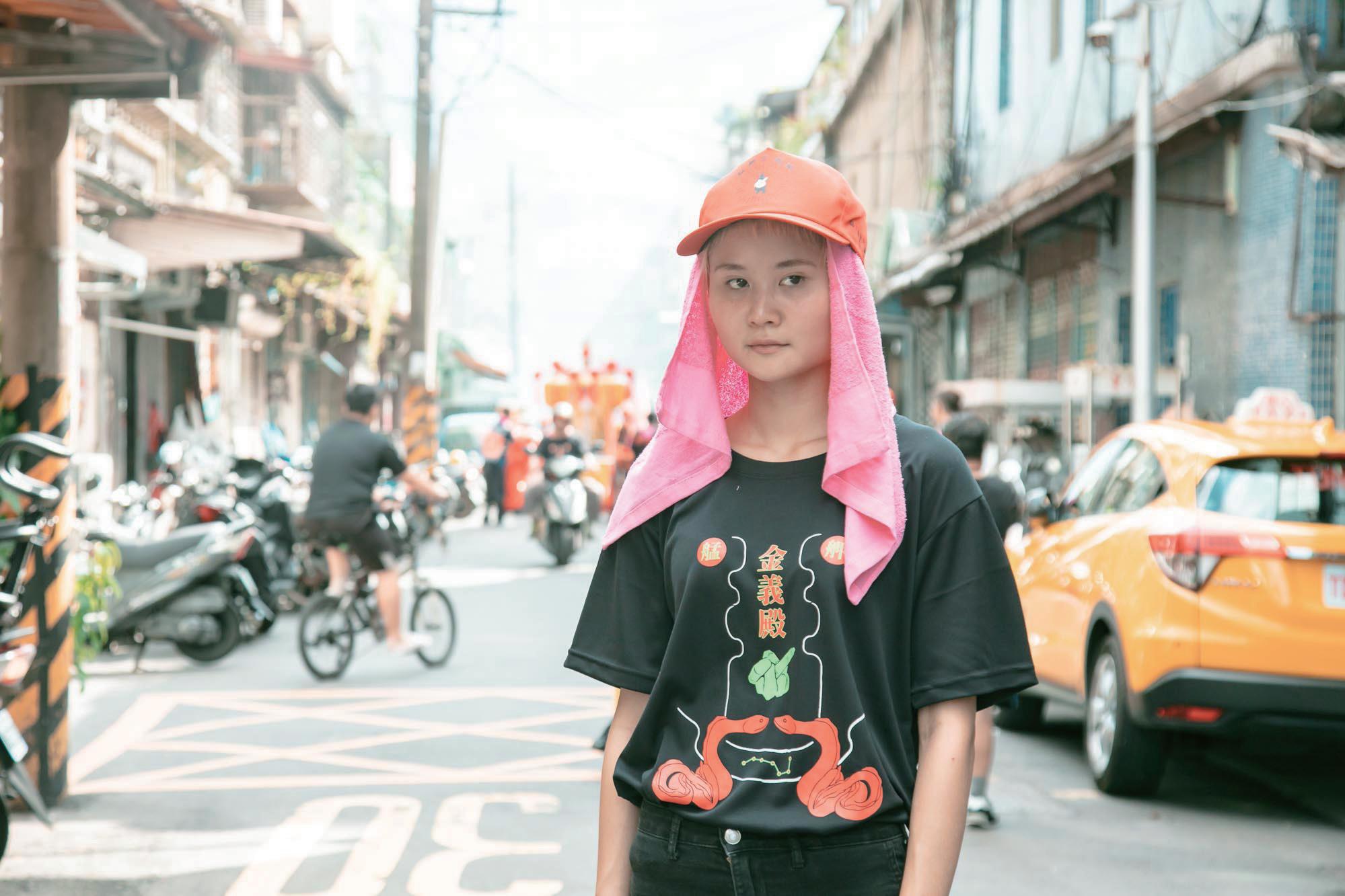 19 製作此遶境服飾時,必須經過神明同意。 所以一開始會先給草稿讓廟方擲茭,這也是製作此專案最有趣的部分。初稿原本只有艋舺金 義殿的宮名和兩條神座下的類似於鯰魚的神獸。在多次擲茭後才再加上開神明代表的北斗七 星。 當然,與另名設計師合作的「貓下去」圖案也是在定稿後多張一起「問神」後才進入印刷程序。 之後遶境活動,廟方指定我們這些製作衣服的設計師必須一起參加活動,所以我們跟著遶境 隊伍走了一整天。當天十分熱鬧並且被知名網路媒體報導,我轉發的貼文也被記者注意到, 是第一次得到大眾關注的經歷。