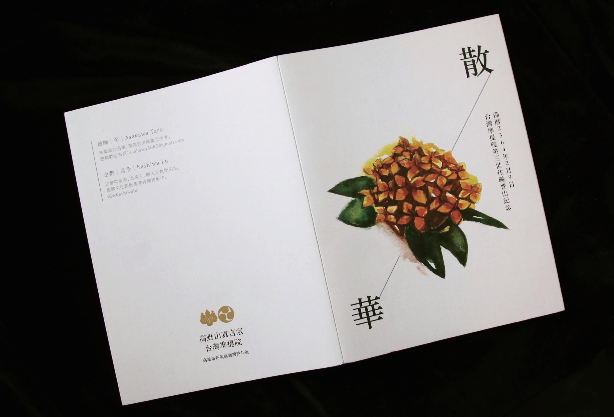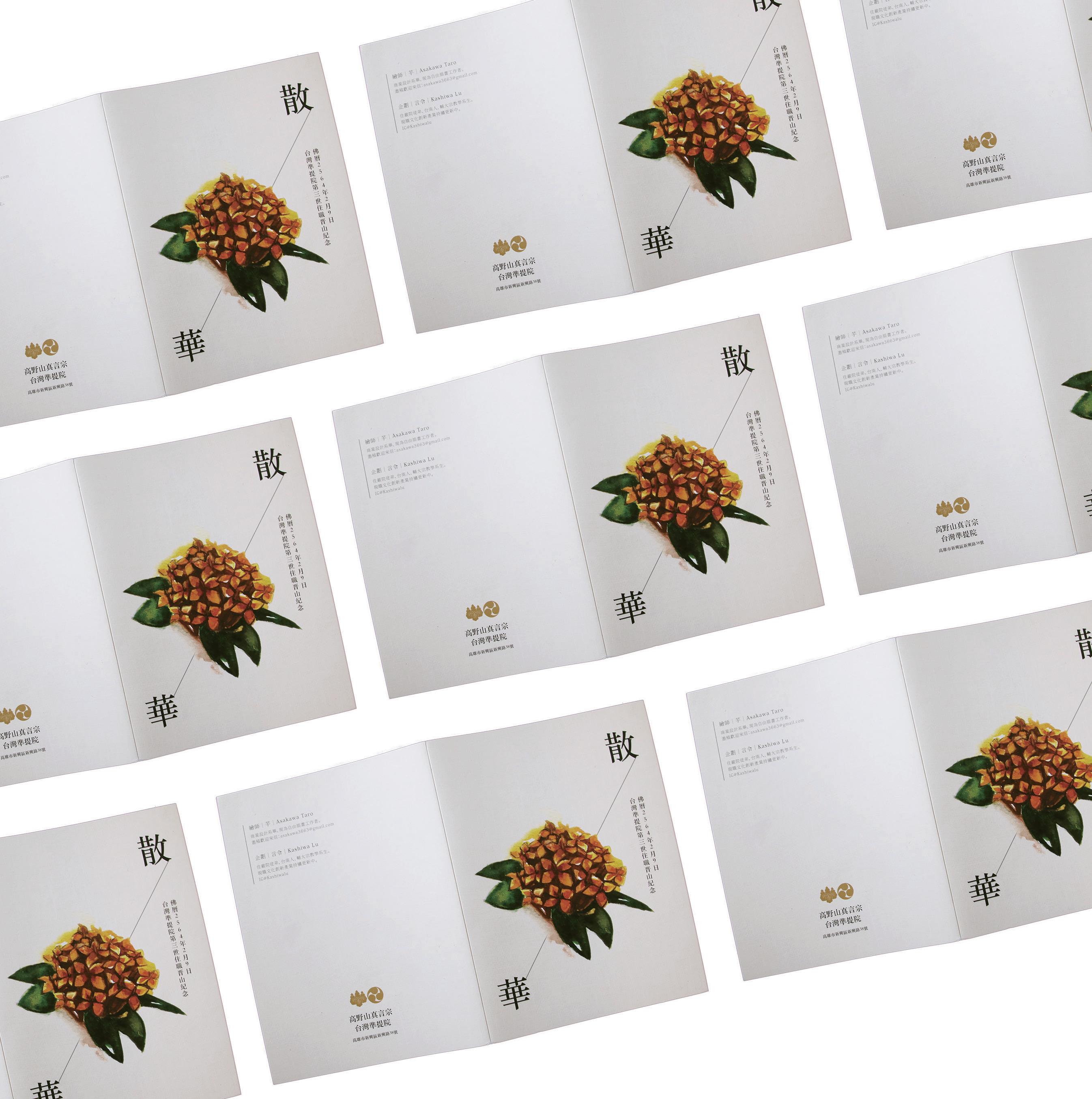 7 插畫設計 此案為高野山真言宗台灣準提院委託之法會文宣設計 負責項目:插畫、排版、摺頁袋狀結構設計、印刷委託、看印、成品攝影