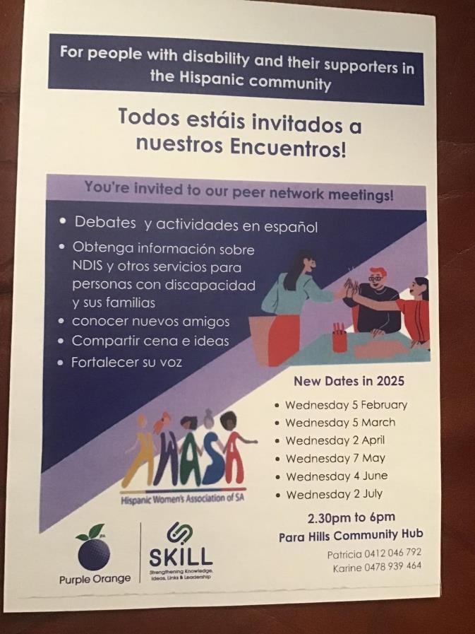 This program is in its 4th year. Purple Orange has been integral in providing a space for Spanish Speaking people to find out more about disabilities in Australia and to learn more about what Disabilities means in the Australian context.