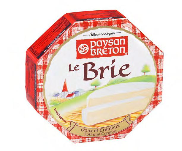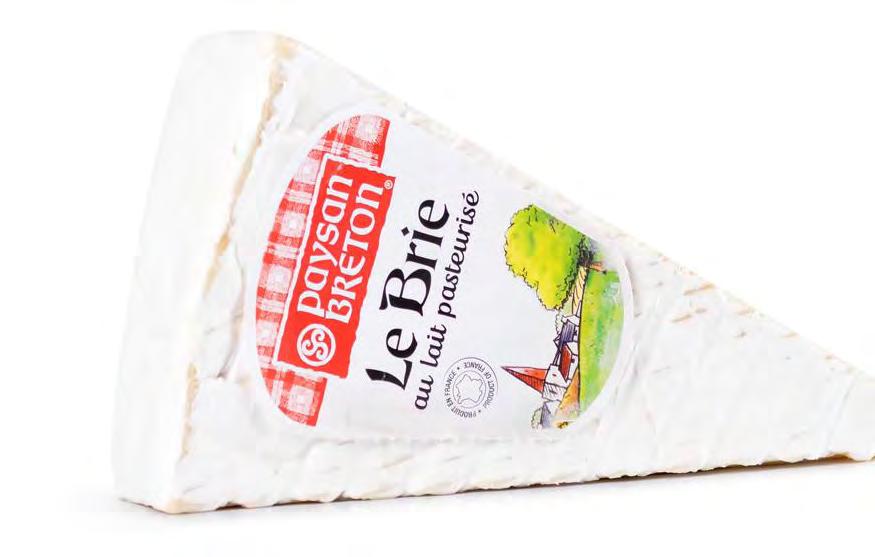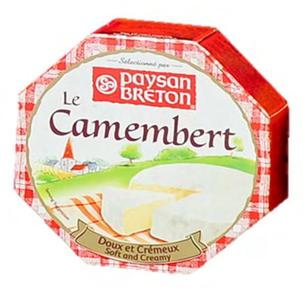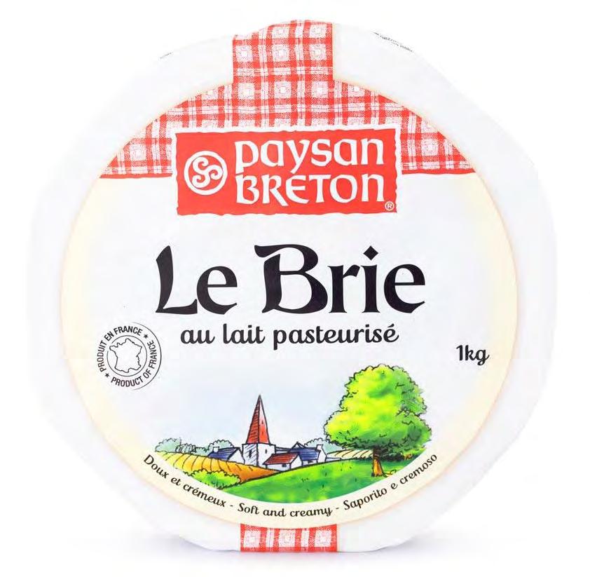 Paysan Breton Brie: a soft cow’s milk cheese, named after the Brie region in France (Seine-et-Marne). It boasts a pale appearance under a white mould rind and is celebrated for its exceptional creaminess. An ideal choice for everyday enjoyment.