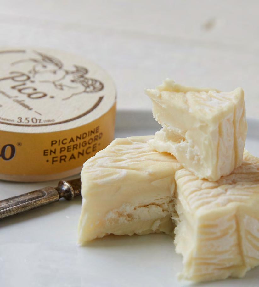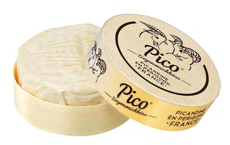 A small goat’s camembert with a natural rind covered with yeast. Both the inside and outside have a golden hue. Pico is matured for approx 10 days at the manufacturer and matures further in its packaging.