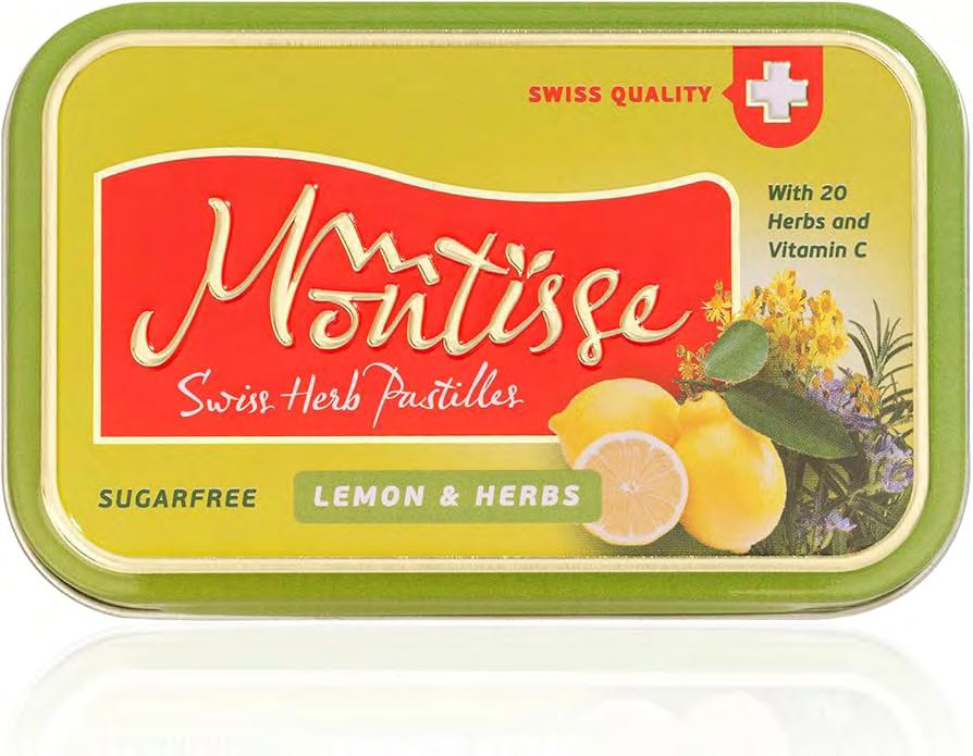 MONTISSE original Swiss herb pastilles are a range of high quality Swiss herb candies, made according to a traditional Swiss recipe. Refreshing, tasteful and pleasant to the mouth and throat. Montisse herb candies contain 20 carefully selected herbs and are enriched with Vitamin C.