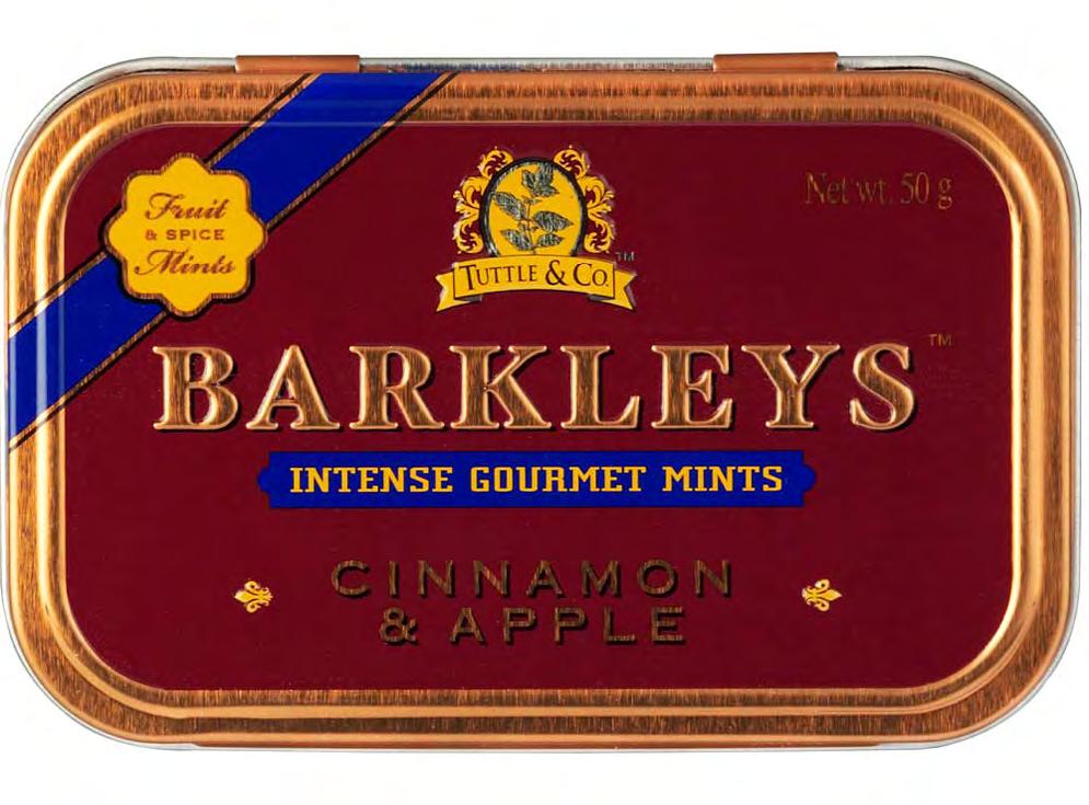 BARKLEYS Gourmet Mints is a specialty product line for the connoisseur and all those who are looking for something special. These Gourmet Mints are a combination of Intense Spices and Sparkling Fruit Flavours. A delightful combination of either Cinnamon & Apple or Ginger & Orange.