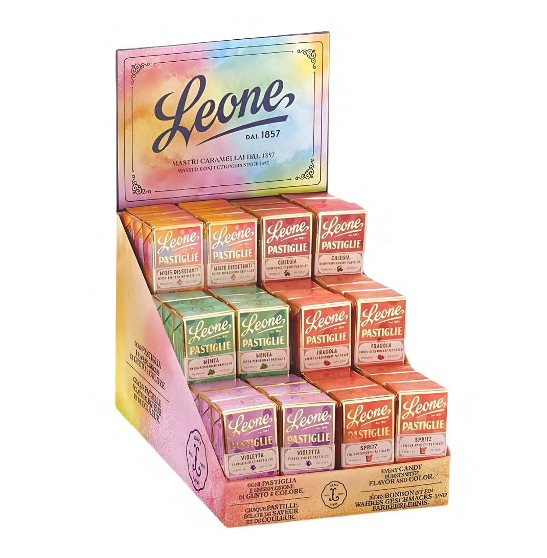 Leone Assorted Pastilles 36-piece display is a limitededition collection of naturally flavoured, zodiac-themed candies. With flavours like mint, cherry, and orange, they’re perfect for gifting, sharing, or adding a festive touch to your Christmas display.