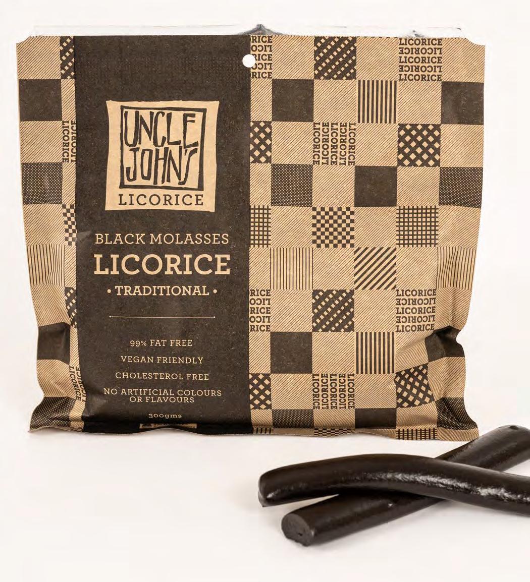 Uncle John’s Licorice is a Traditional Molasses Licorice that has been enjoyed by licorice lovers everywhere for 30 years. Our traditional batch – style recipe is handmade with molasses and extract of licorice root, bringing you the well –loved taste and texture of a truly traditional licorice. Choc coated!