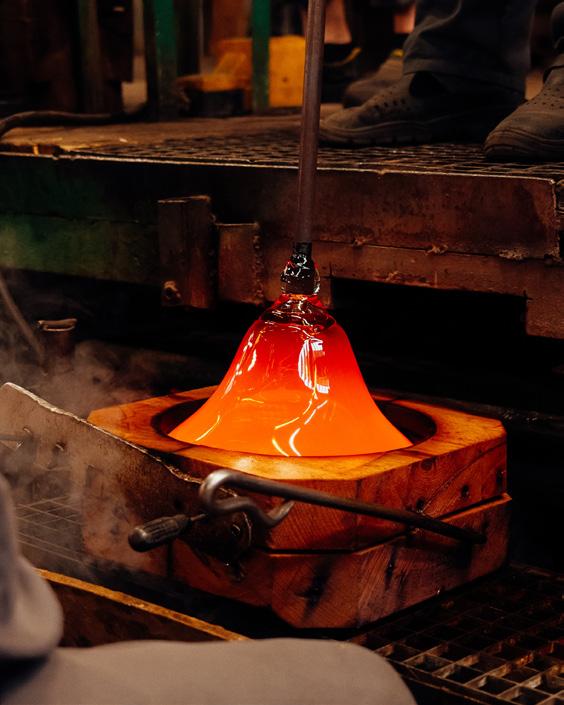 Mouth-blowing such large, intricate pieces requires immense precision and years of experience. Each product’s creation demands careful control to achieve the perfect form and thickness.