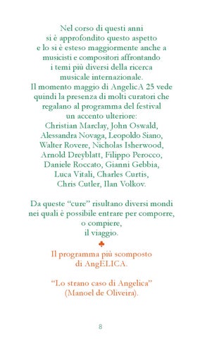 Nel corso di questi anni si è approfondito questo aspetto e lo si è esteso maggiormente anche a musicisti e compositori affrontando i temi più diversi della ricerca musicale internazionale. Il momento maggio di AngelicA 25 vede quindi la presenza di molti curatori che regalano al programma del festival un accento ulteriore: Christian Marclay, John Oswald, Alessandra Novaga, Leopoldo Siano, Walter Rovere, Nicholas Isherwood, Arnold Dreyblatt, Filippo Perocco, Daniele Roccato, Gianni Gebbia, Luca Vitali, Charles Curtis, Chris Cutler, Ilan Volkov. Da queste “cure” risultano diversi mondi nei quali è possibile entrare per comporre, o compiere, il viaggio.