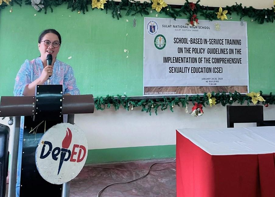 HANDS-ON Bilang pagpapakita ng aktibong suporta sa mga aktibidad ng DepEd, personal na tinatalakay ng mismong Schools Division Superintendent Gorgonio G. Diza, Jr. ang isang paksa sa ginanap na pang-dibisyon na pagsasanay sa dyurnalismo sa Guiuan, Eastern Samar noong Mraso 8 9, 2024.