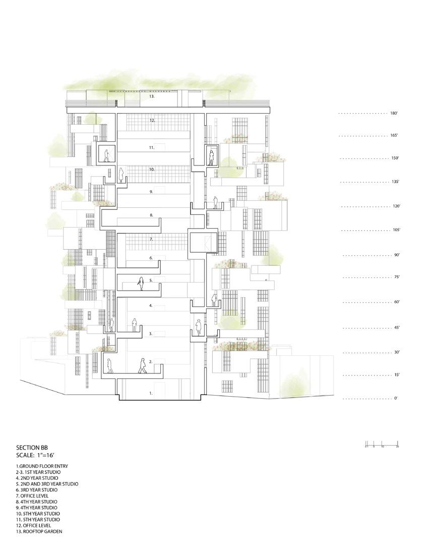 This project explores a series of alterating public versus private experiences throughout the residential parts of the program that would allow the developement of an inner community between the residents and their spaces. These alterating spaces allow the opportunity for residents to interact and form a relationship with the spaces as well as with one another as they enter and exit their own homes. The levels of privacy vary based on each level of the building as it is most private on the first ground of the residential spaces and is most public on the roof of the building where residents could roam and be more exposed to the exterior environment.