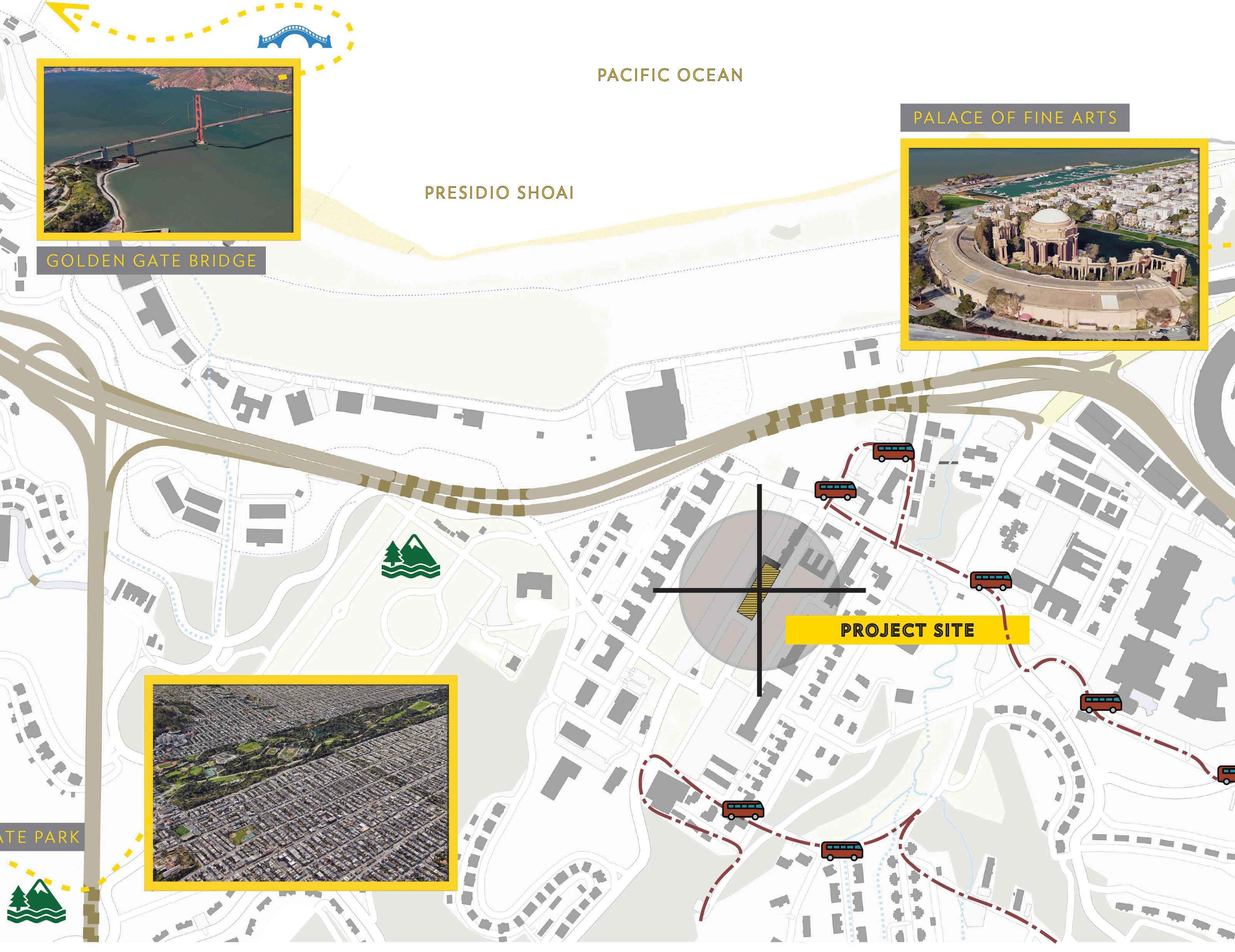 Geographically, nestled amidst San Francisco's iconic landmarks, the project enjoys access to comprehensive transportation networks. Surrounded by diverse roadways and pedestrian paths, the site offers proximity to public green spaces, balancing urban vibrancy with tranquil retreats. However, city noise punctuates the ambiance, prompting meticulous sound design considerations. Weatherwise, the project contends with San Francisco's mild, humid climate, often veiled by coastal fog. Design deliberations prioritize optimal orientation, moisture-resistant materials, and efficient ventilation to harmonize with the city's atmospheric nuances.