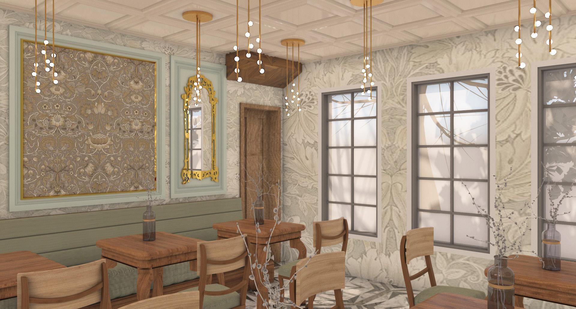 I will determine the Rococo style for this cafe design. In order to let our audience feel the Italian Renaissance atmosphere preserved in Florence at any time from this space. For the interior decoration of the cafe, will consider classical architectural elements such as gorgeous and complicated decorative lines, shell shapes, curved designs, and mirror decorations.