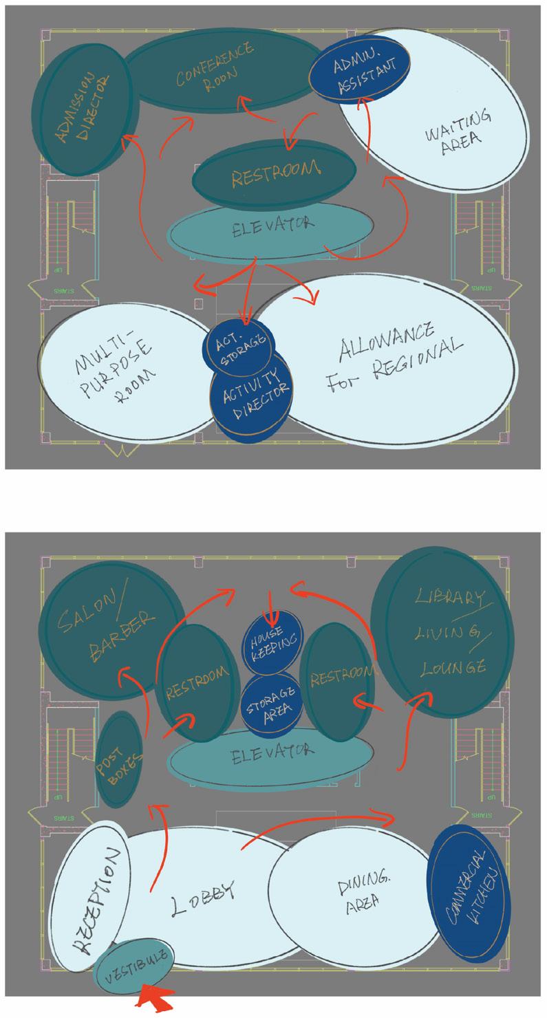 Therefore, our proposal will use rational ergonomic theory, precise dimensions, unique design style, and vibrant combinations to create a space for caring senior living.