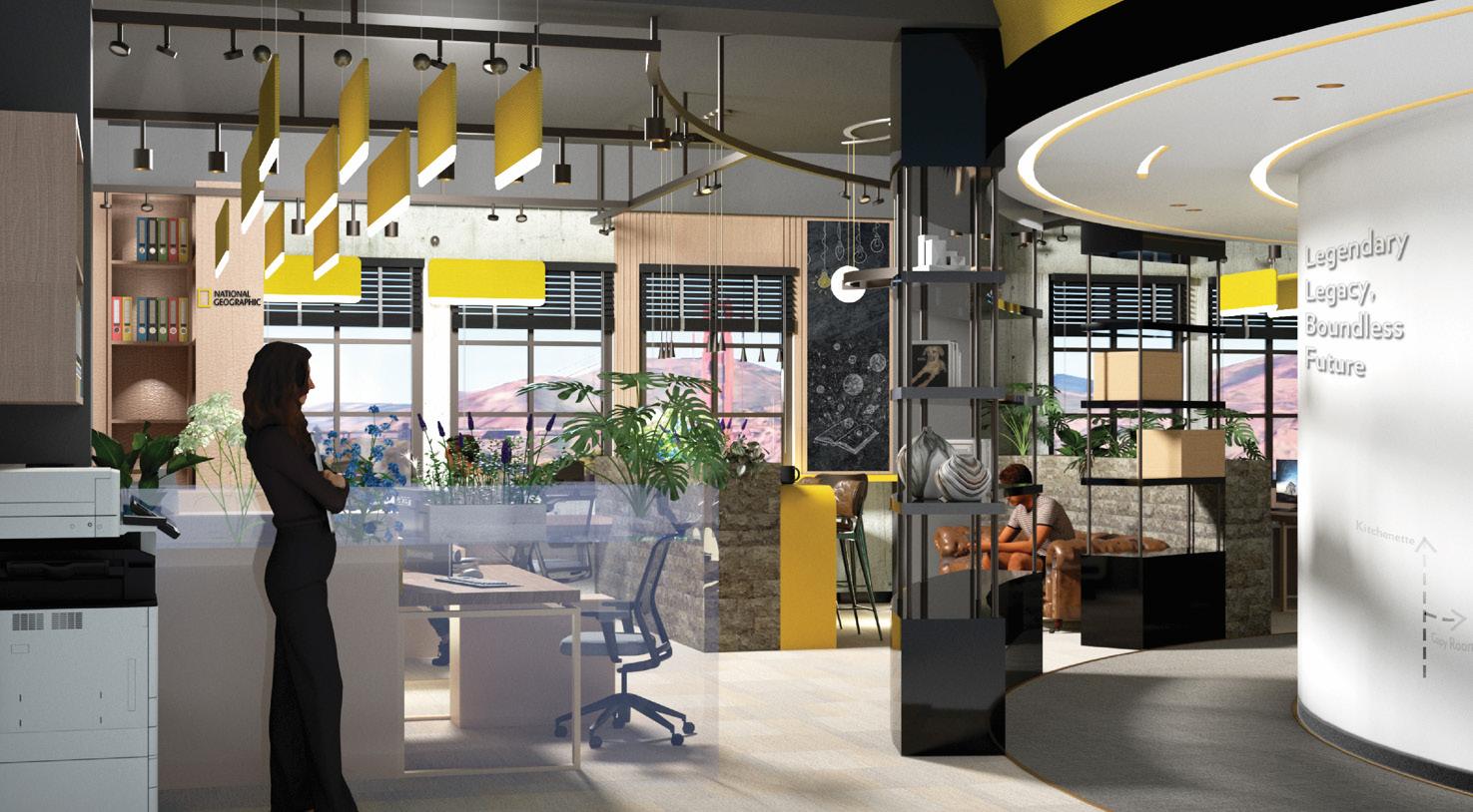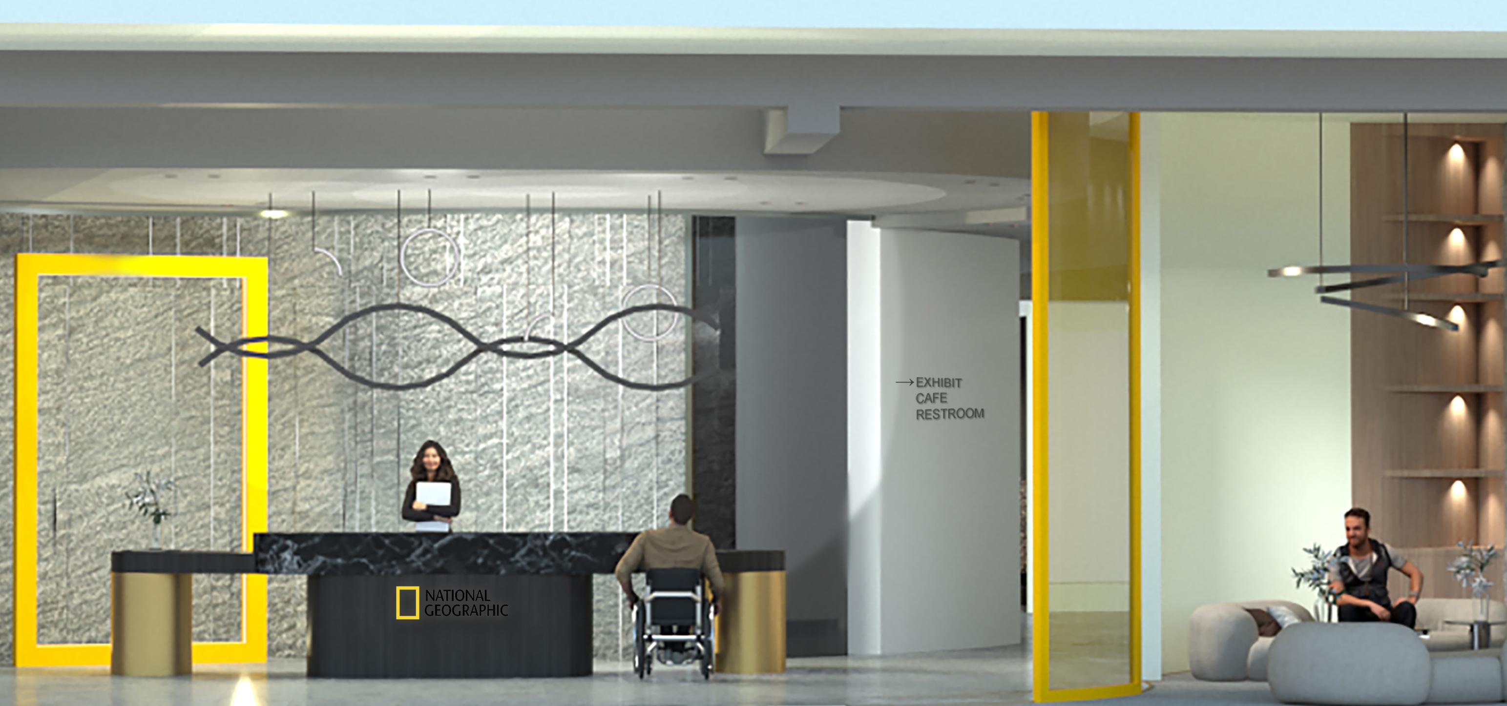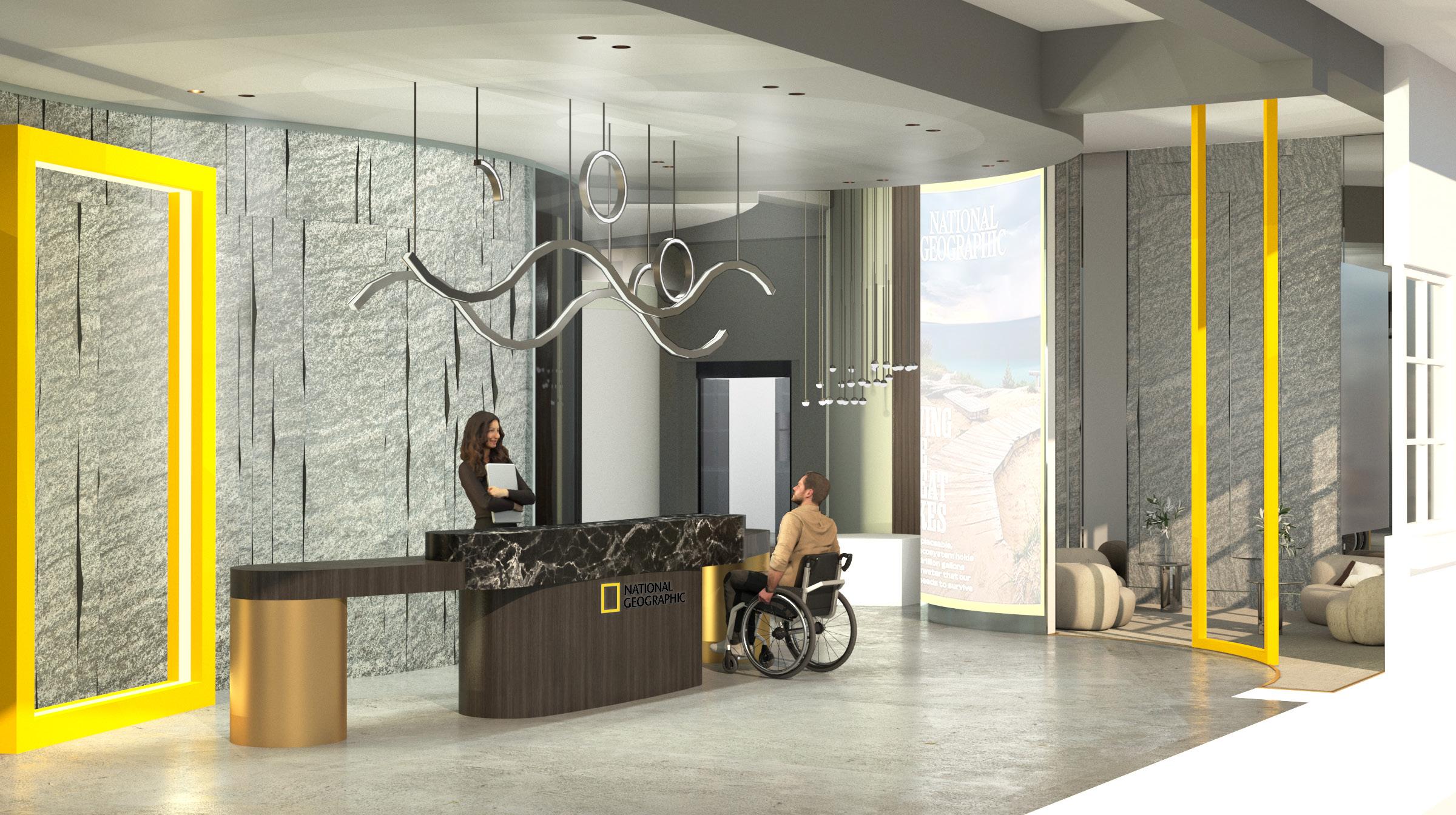 Additionally, the National Geographic showroom and office will prioritize Universal Design principles, ensuring accessibility and inclusivity for all individuals. The design will prioritize barrier-free spaces, incorporating ramps, elevators, and wider pathways to help seamless movement for individuals with mobility challenges. In embracing Universal Design, the National Geographic space becomes a welcoming environment that fosters collaboration and engagement, embodying the brand's dedication to promoting understanding for the world's diversity.