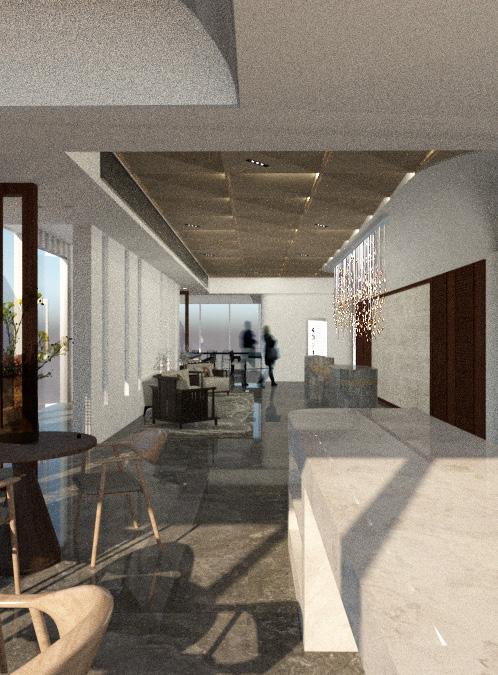 To deepen the visitor's visual impact, combined with the shaped ceiling and curved wall structure design, I will customize an irregular ADA front desk. To better fix the core of National Geographic, back to nature, some concrete and raw natural elements or textures will be used.