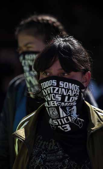 En todo el recorrido se encontraron con monumentos y edificios públicos blindados con vallas, sobre las que pintaron y golpea ron. Aun así, la marcha transcurrió en relati va tranquilidad y fueron escasos los conatos de violencia, a pesar de una fuerte presencia policial, con centenares de agentes en todo el recorrido y en las calles aledañas al Zócalo.