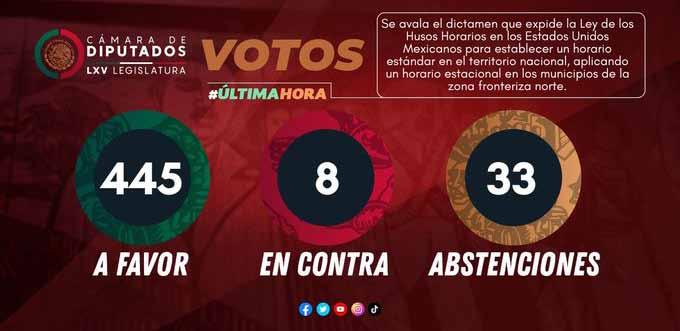 Así votaron los diputados federales para eliminar el horario de verano