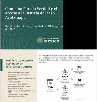 Encinas apuntó que de los 154 eventos fundamentales que se en cuentran en el informe, en 99 casos hay cruce de información entre varias fuentes que dotan de mayor fortaleza a esos datos, y solamen te en 55 casos no hay confirmación entre dos fuentes, hasta ahora.