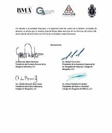 Consejo General de la Abogacía Mexicana (CGAM), que el 12 de enero exigió la renuncia de Yasmín Esquivel Mossa, toda vez que es “éticamente insostenible” que continúe como ministra del SCJN luego de haber sido corroborado su plagio de tesis.