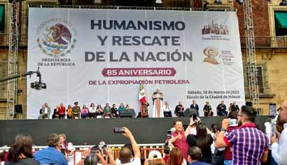 “Hoy nuestro pueblo tiene el legítimo derecho de celebrar con orgullo, junto a su presidente Andrés Manuel López Obrador, en este Zócalo histórico, la gran expropiación decretada por el general Lázaro Cárdenas del Río hace 85 años. Hoy como entonces, el país está recibiendo beneficios del petróleo gracias a la decisión del presidente de la República de apoyar más y primero a los pobres de México”, apuntó. <<