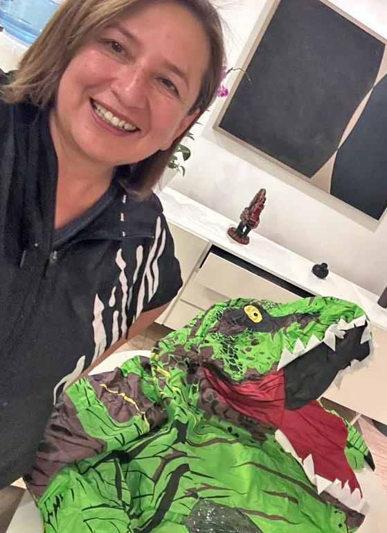 Por ello, la noche anterior posteó una foto junto a una botarga jurásica con la frase: “¡Buenas noches! A descansar que mañana hay que volver a dar la batalla