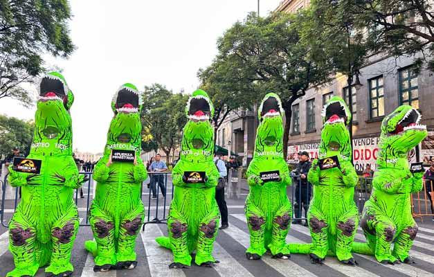 Cabe resaltar que las botargas jurásicas también contaban con carteles que decían “BARTEOLÍTICO” con el objetivo de señalar y criticar a Manuel Bartlett Díaz, director de la Comisión Nacional de Electricidad (CFE).