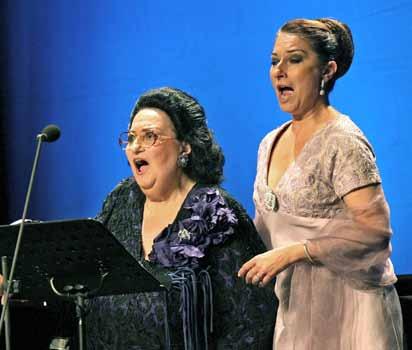 La soprano (i), acompañada de su hija Montserrat Martí, en 2014, en un recital