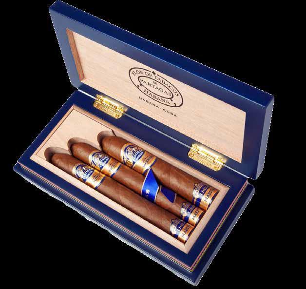 Además, los tamaños Rito, de 6 5/8 por 52, y Maestro, que es un belicoso grueso de 5 1/4 por 56; cabe destacar que el haber cambiado las clásicas bandas rojas por las azules se debe a la intención de incluir más elementos dorados y presentar los nombres de cada tamaño.