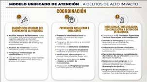 En cuanto a la atención a delitos de alto impacto, el plan contempla tres puntos básicos: