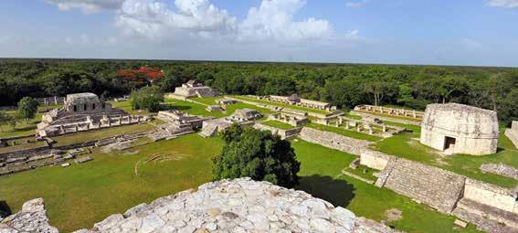 pobladores según estimaciones de expertos; Oxkintok, con sus inscripciones calendáricas, columnas de piedra antropomórficas y hasta un laberinto, o Kabah, que guarda las mejores muestras de arte de esta milenaria cultura. Asimismo, no se puede dejar de mencionar espacios como Acanceh, localizada en un pueblo del mismo nombre al sureste de Mérida, Aké, Izamal y Ek’ Balam, que deslumbran a los visitantes con sus plazas, murallas, murales, palacios y una gran belleza deco-