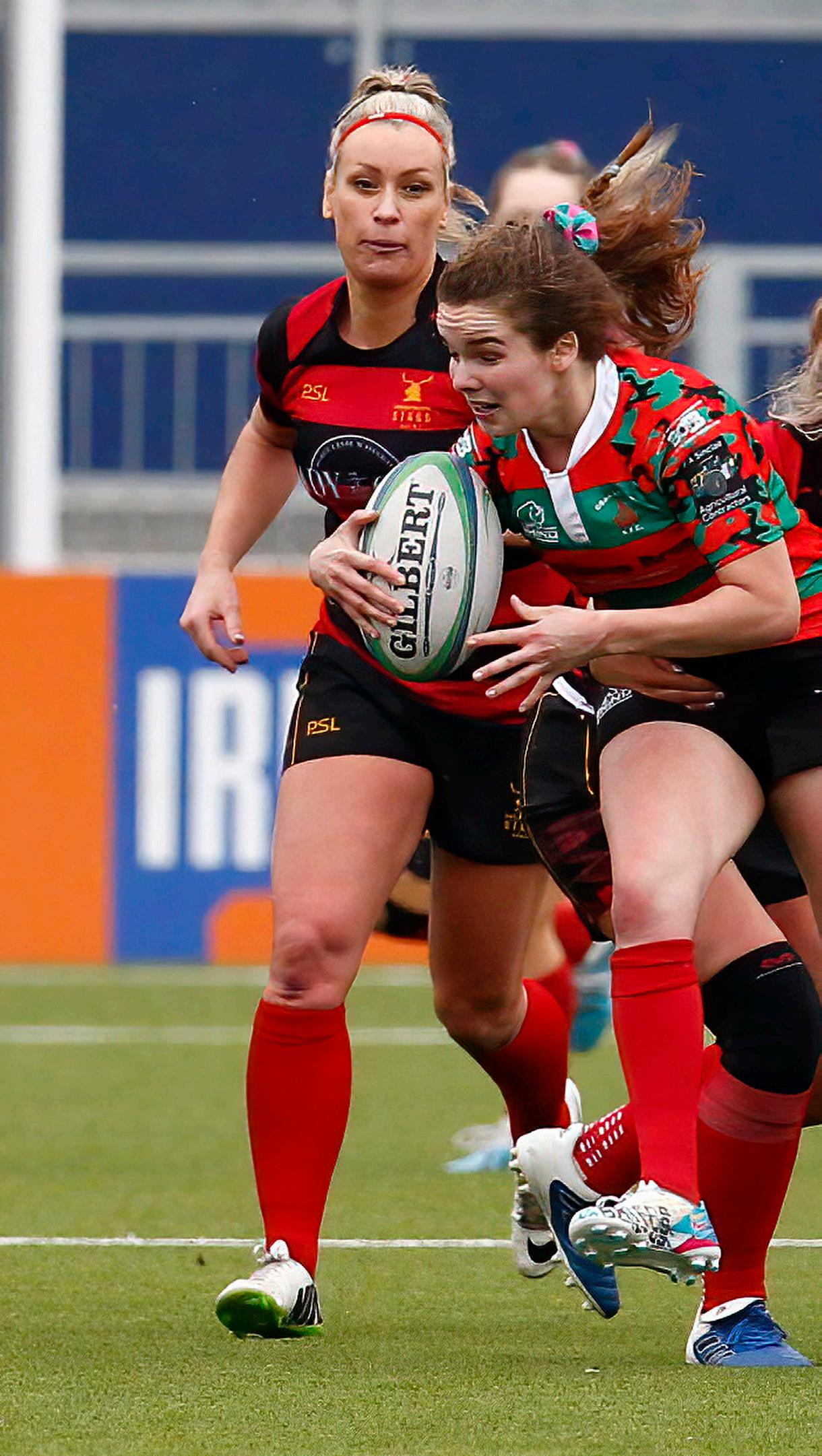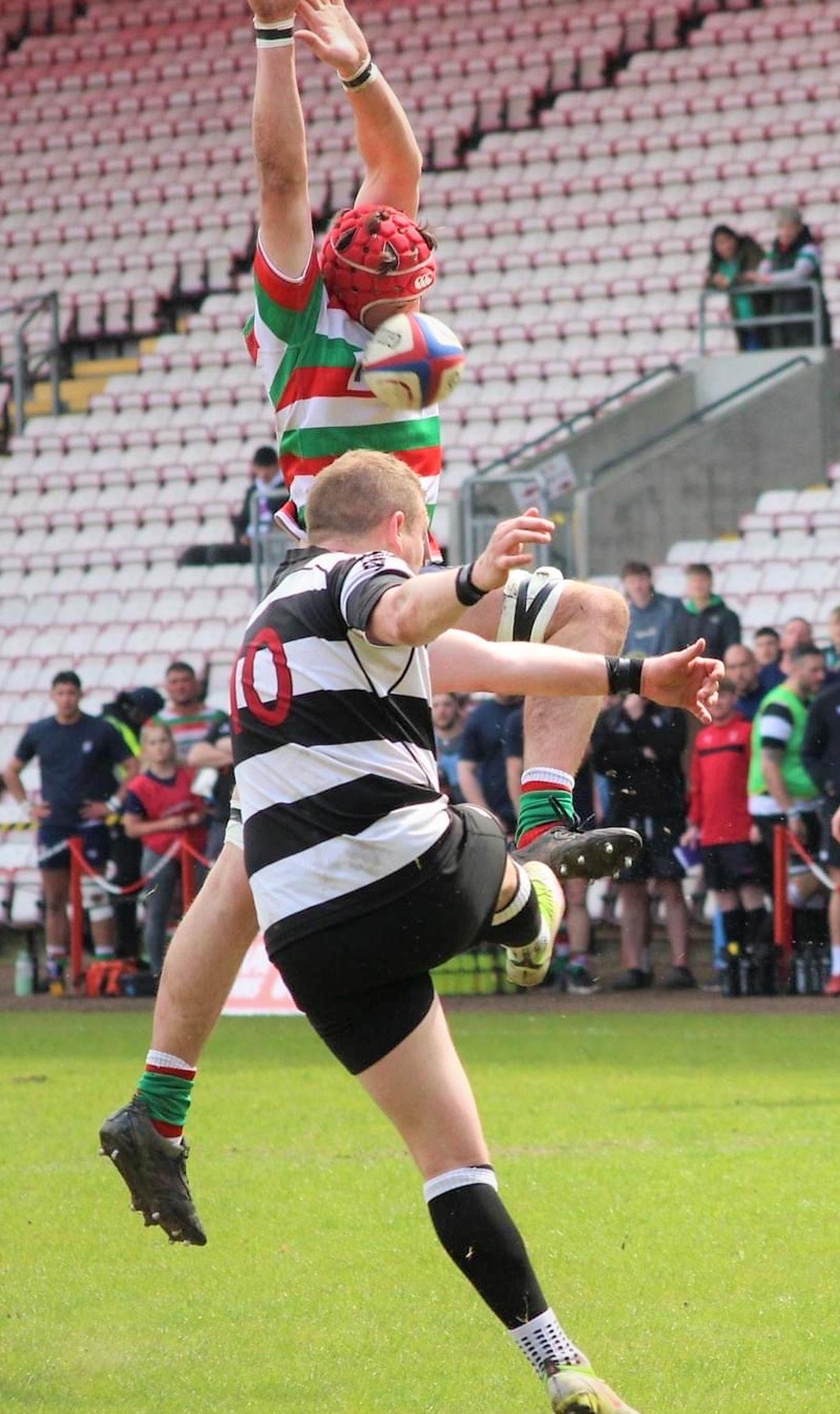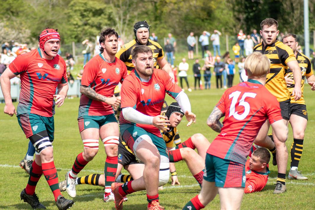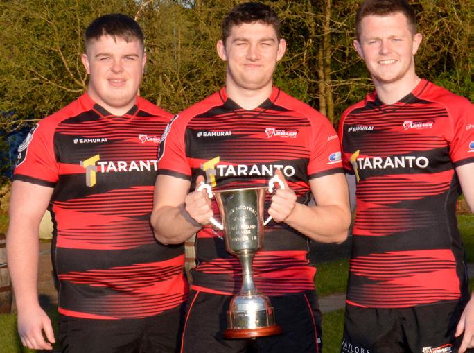 Although they were struggling to get within reach of the ‘Tarf try-line, Skehan’s charges finished the first half with two tries. La Grue stunned the defending champions with a 35thminute intercept try, and then Adams pounced for another long-range breakaway score, converted by Dooley who had kicked two earlier penalties.