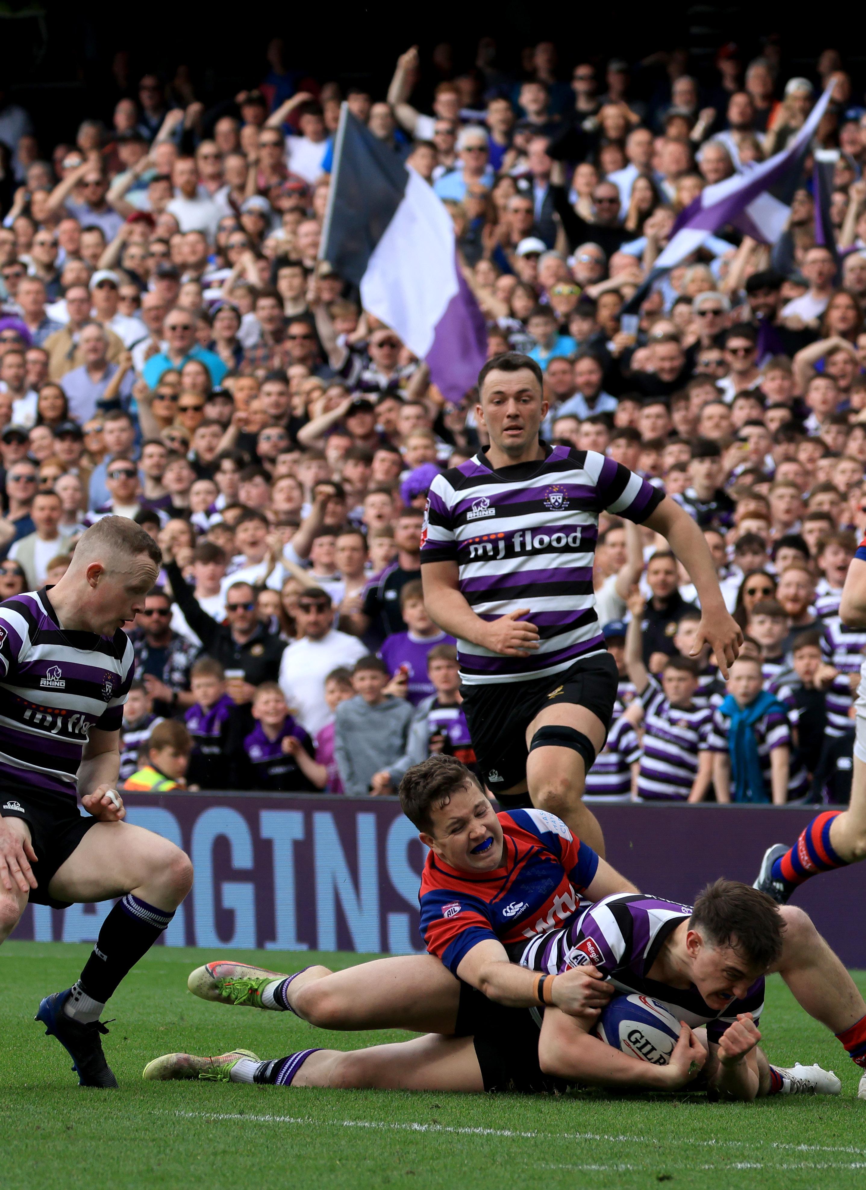 romp clear from halfway. Despite the pressure exerted by Clontarf’s dominant scrum, Sean Skehan’s men cancelled out tries from Aitzol Arenzana King and JJ O’Dea with a late brace of their own for an unlikely 18-10 half-time lead.