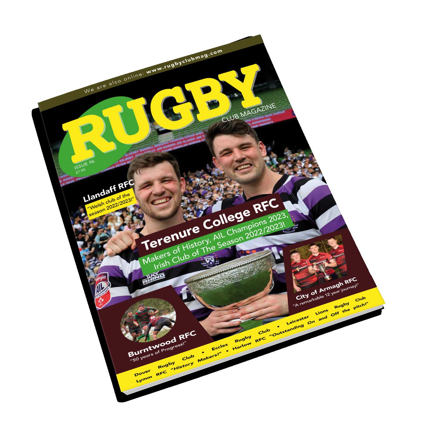Special thankyou to both of our Irish clubs: Cormac O`Kelly and his guys at Terenure College RFC and Evan Morton who have gone beyond the call to help us present City of Armagh RFC in the best possible way we can. It always strikes me what a special sport Rugby is, a safe place for our children and a learning ground for life where true friendships and connections are made; a worldwide clan! As training starts again and our teams look forward to entering their respective leagues to play one game at a time we can look forward a new season and a mouthwatering RWC in France. Rugby was always an 80 minute meditation for me once a week where my mind would not be thinking about yesterday or tomorrow but ball and the players. I hope you enjoy this special edition of the magazine and appreciate all these great clubs who have excelled this season; I will leave you with a famous quote from the Australian scrum half Nick Farr Jones who said: “He’s the sort of player whose brain doesn’t always know where his legs are carrying him.” …that’s not always a bad thing!